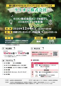 KOICシリーズとして12回目となる今回は、人々の心と身体の健康づくりへの貢献を目指し事業活動に取り組んでいるライオン株式会社に”7件のニーズ”をご紹介いただき、カンファレンス参加者とのビジネスマッチングを支援します。
